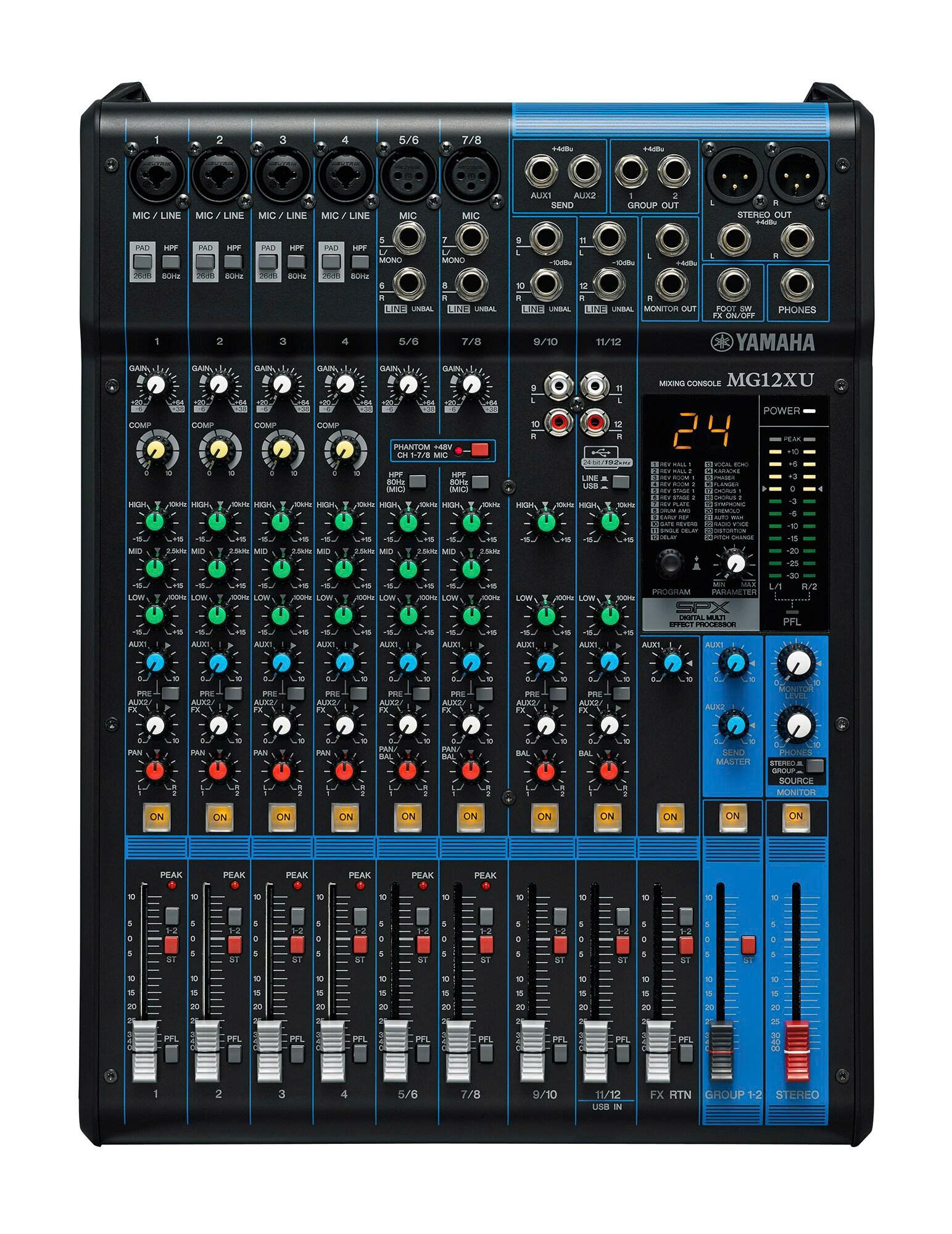 YAMAHA MG12XU là bàn mixer 12 kênh chất lượng cao, tích hợp preamp D-PRE Class-A, compressor 1-knob, hiệu ứng SPX 24 chế độ và giao diện USB 24-bit/192kHz.